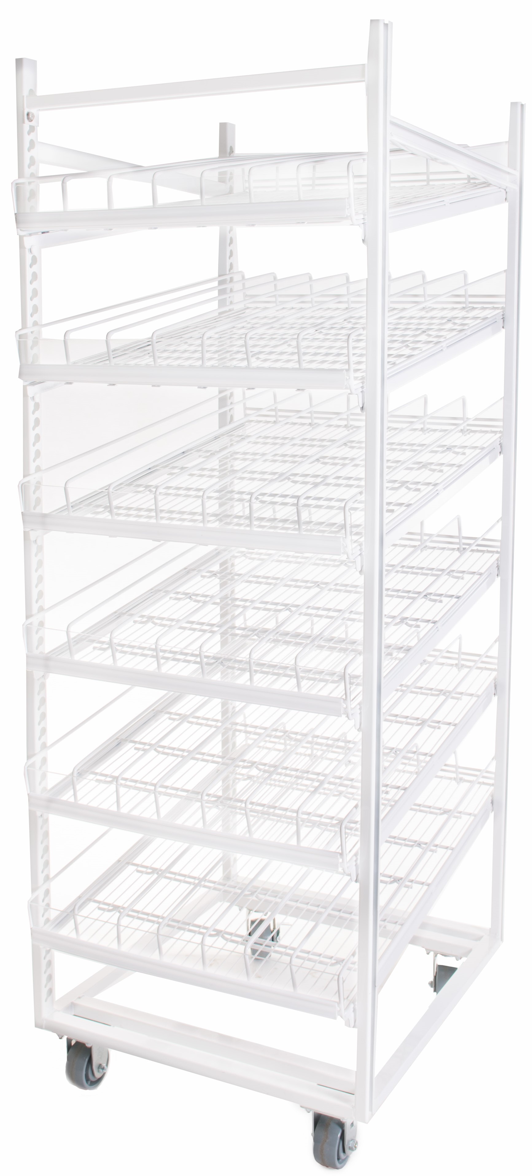 The Flex Mobile Merchandiser will facilitate inventory management and help you increase your bottom line. Save on energy while providing a full view of your products, reducing the need to open doors for previewing. Wire shelves improves the overall look of the display with front-facing fully stocked capabilities. The Flex rack also contains a bumper to avoid cooler damage.